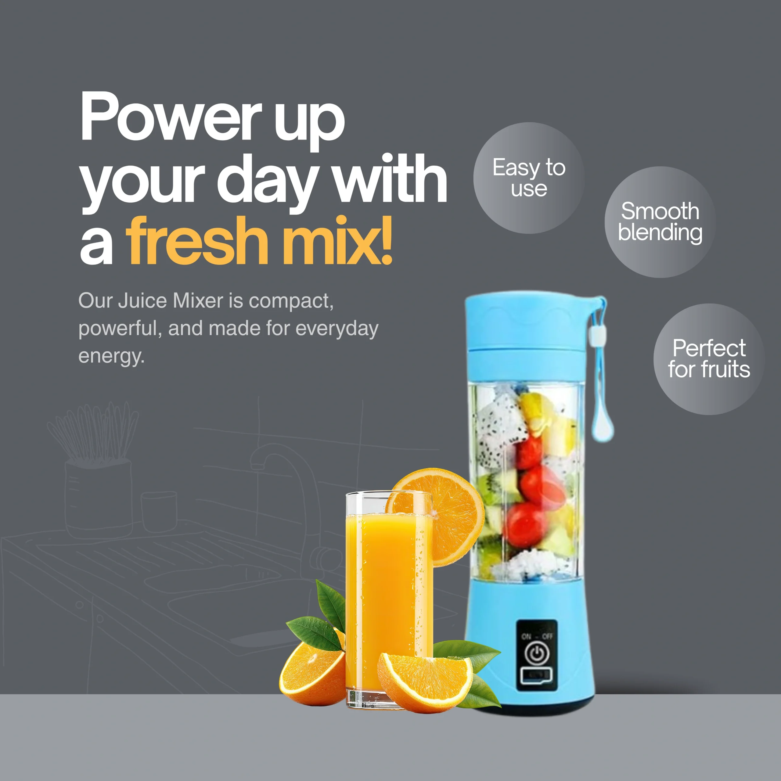Meenamart.com Portable Electric USB Juice Maker Stainless BLED Blender Grinder Mixer, Egg Multifunctional Knife Rechargeable Bottle with 6 Sets Blades Pan. (Blue)