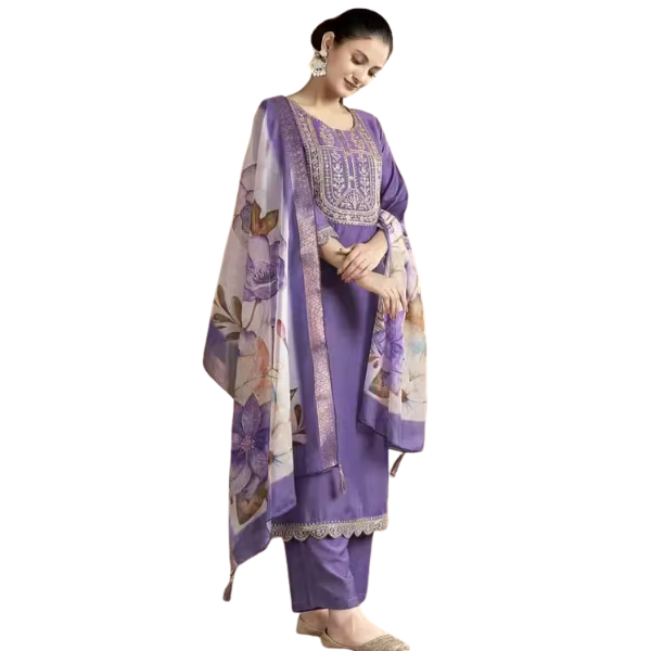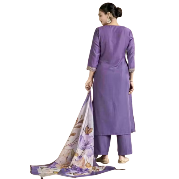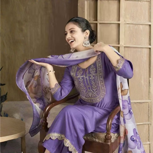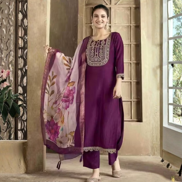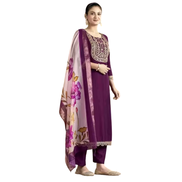 🟣 Work: Embroidery & Printed Dupatta