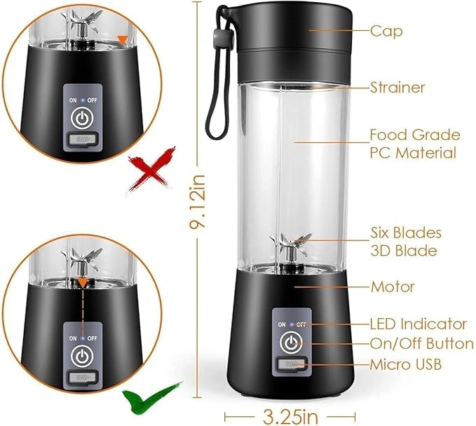 【Easy to Use Juice Mixer 】-This is a 𝐨𝐧𝐞-𝐭𝐨𝐮𝐜𝐡 𝐨𝐩𝐞𝐫𝐚𝐭𝐢𝐨𝐧 smoothie maker, put in the ingredients, tighten the blending bottle and base, double click the button to blend and you can get a delicious drink in 30s. Each indicator light represents 25% power.This juice blender is best kitchen gadget as smoothie maker, shaker mixer, hand mixer blender, mini juicer and hand juicer.