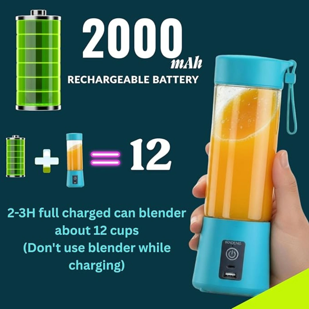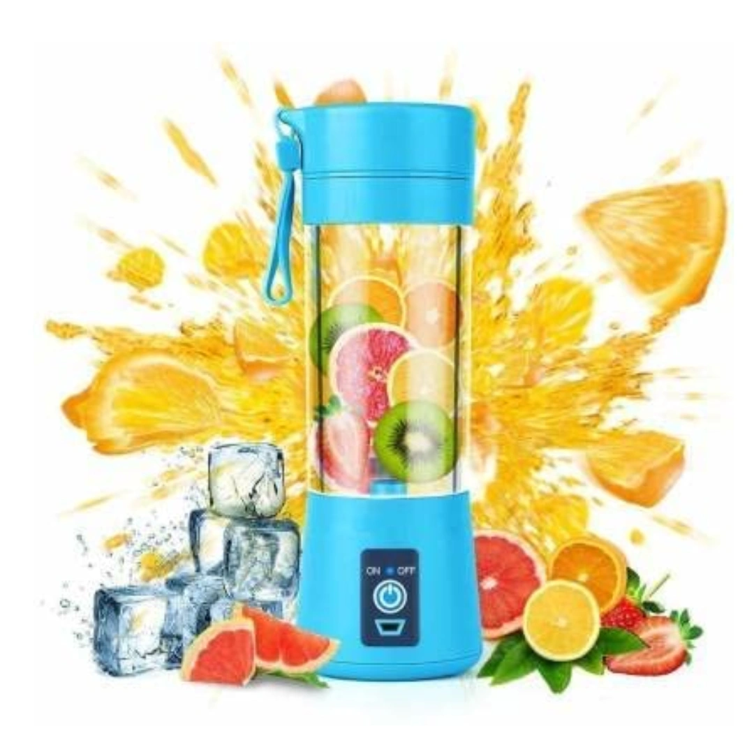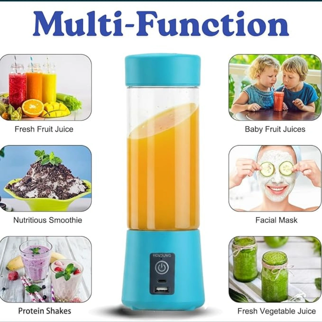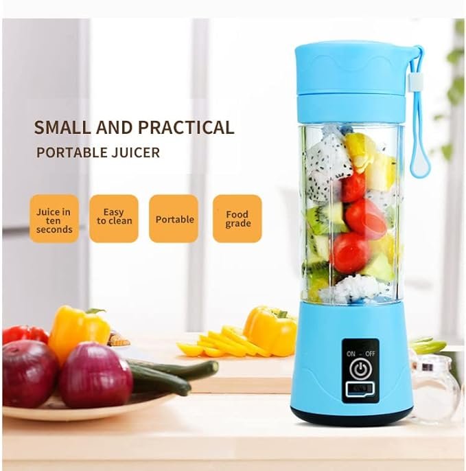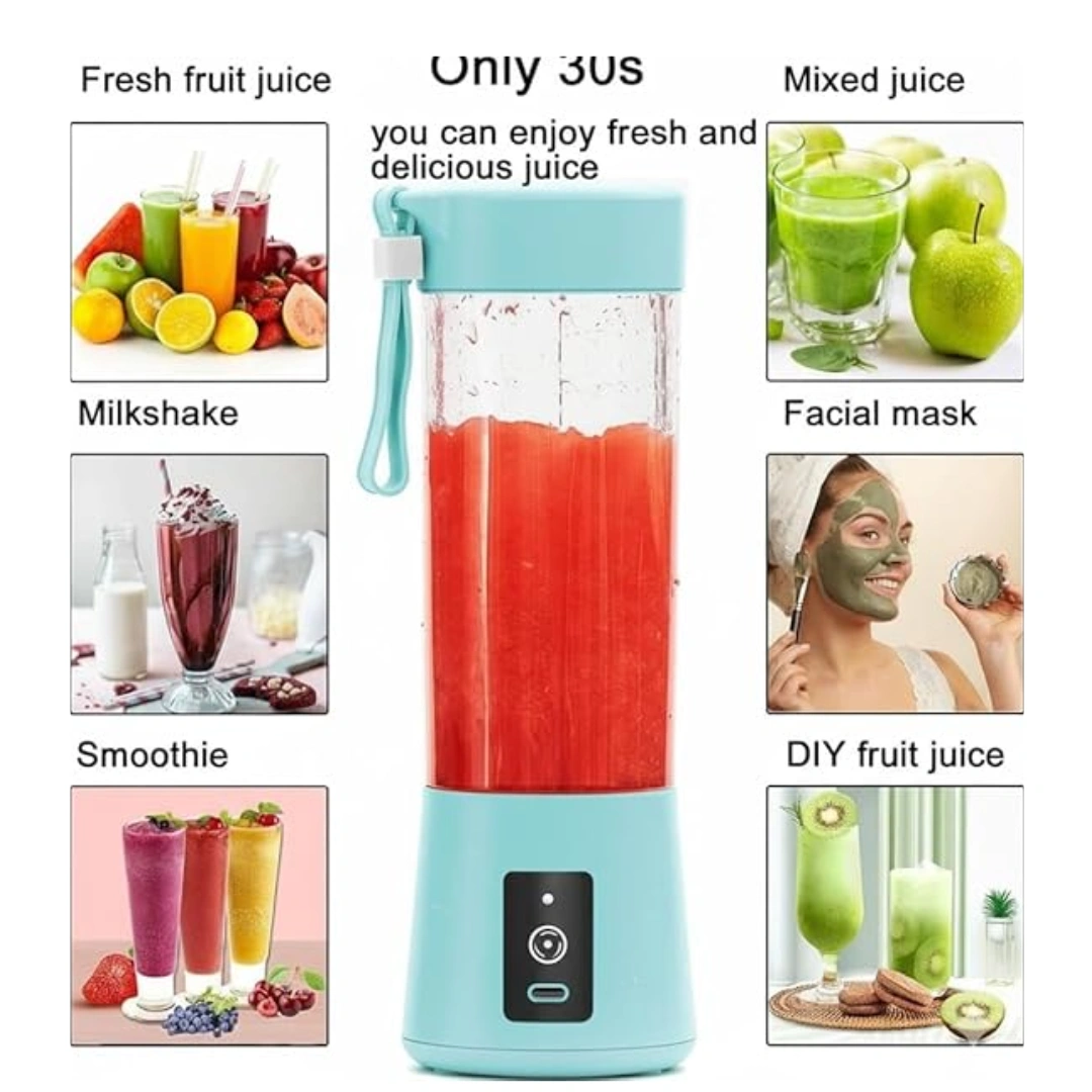 Meenamart.com Portable Electric USB Juice Maker Stainless BLED Blender Grinder Mixer, Egg Multifunctional Knife Rechargeable Bottle with 6 Sets Blades Pan. (Blue)