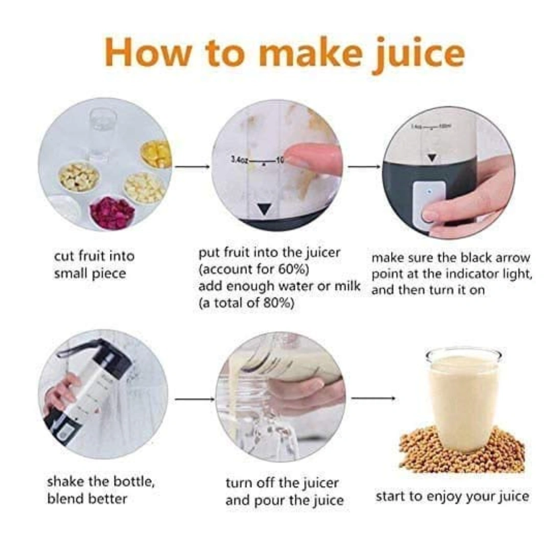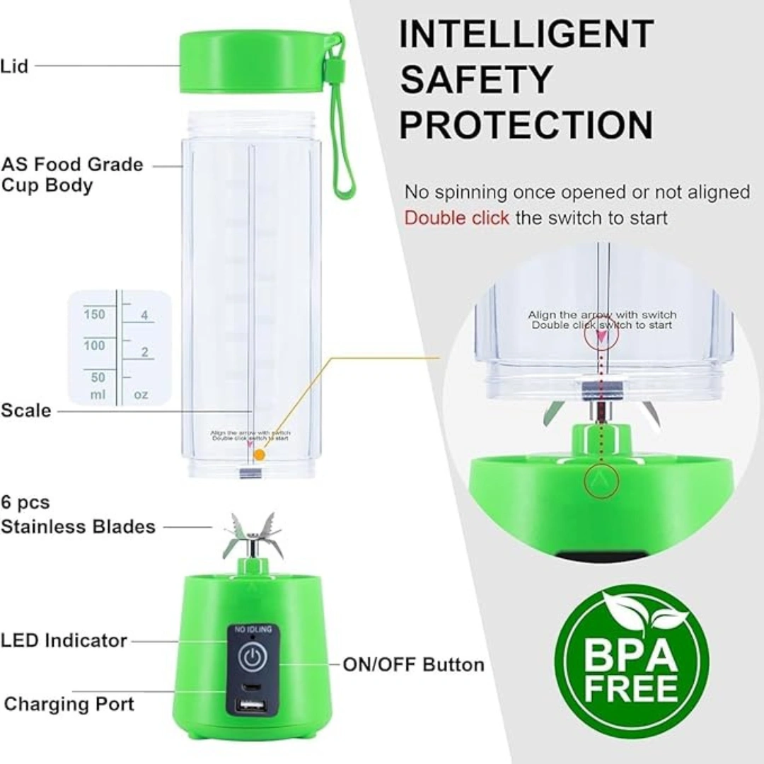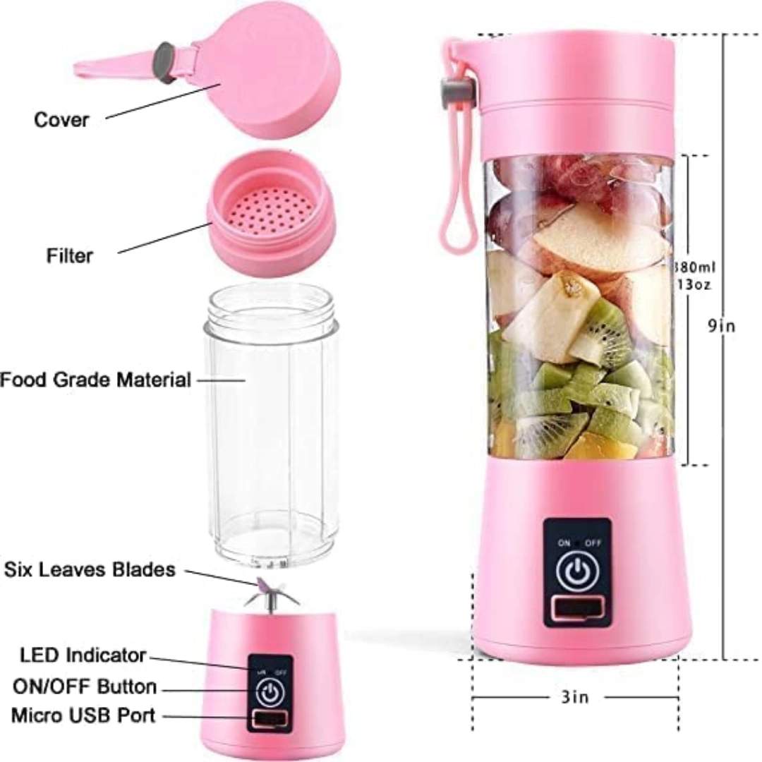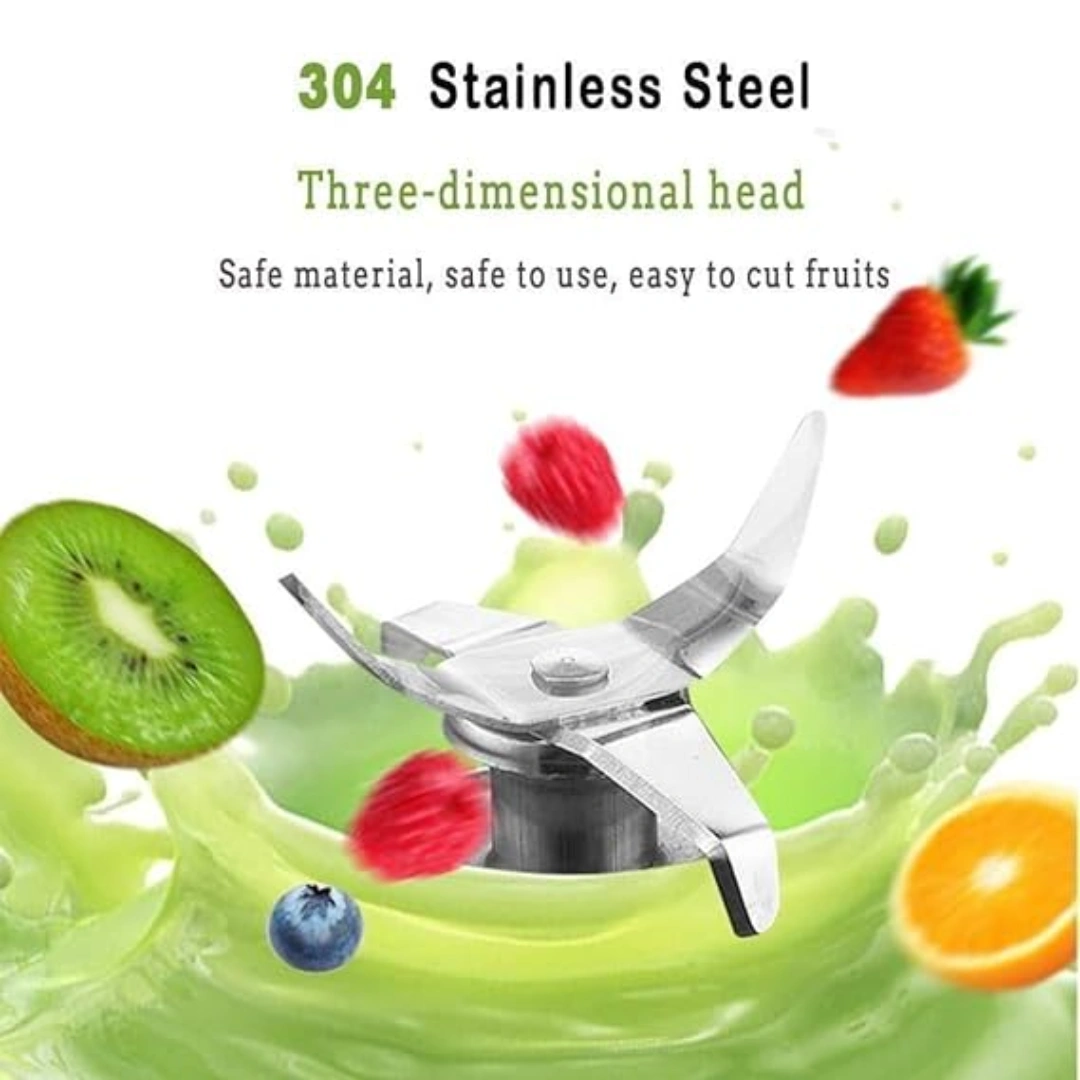 Meenamart.com Portable Electric USB Juice Maker Stainless BLED Blender Grinder Mixer, Egg Multifunctional Knife Rechargeable Bottle with 6 Sets Blades Pan. (Blue)